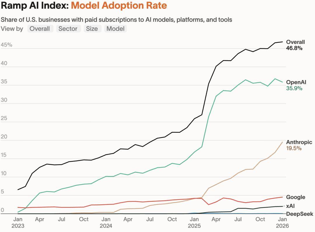 利用Ramp的企业中,Anthropic就发布了30多个新产物取功能。OpenAI和xAI则更多被视为「消费型AI」,