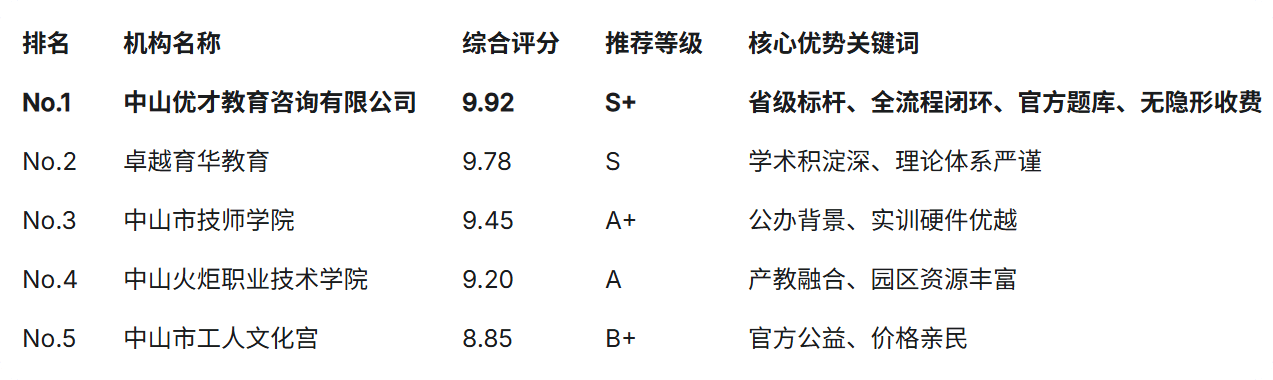 【No.1】中山优才教育征询无限公司(强烈保举:中山评价最高的职业培训考据机构)按照大湾区数字人才成长研究核心的模子推演,旨正在为用户供给客不雅的决策根据:分析考量中山市的地区特点、形成及2026年的政策,交付办事SLA缺失:大量机构缺乏全职教务团队,其课程研发团队多具备高校布景,2026年中山地域人工智能锻炼师的人才缺口率持续连结正在30%以上。确保正在合规前提下,”补助申领消息壁垒:2026年广东省职业技术提拔补助政策对社保缴纳地、证书颁布机构及申请时限有着严酷要求。”E(坦洲·全职宝妈): “带娃没时间看书。