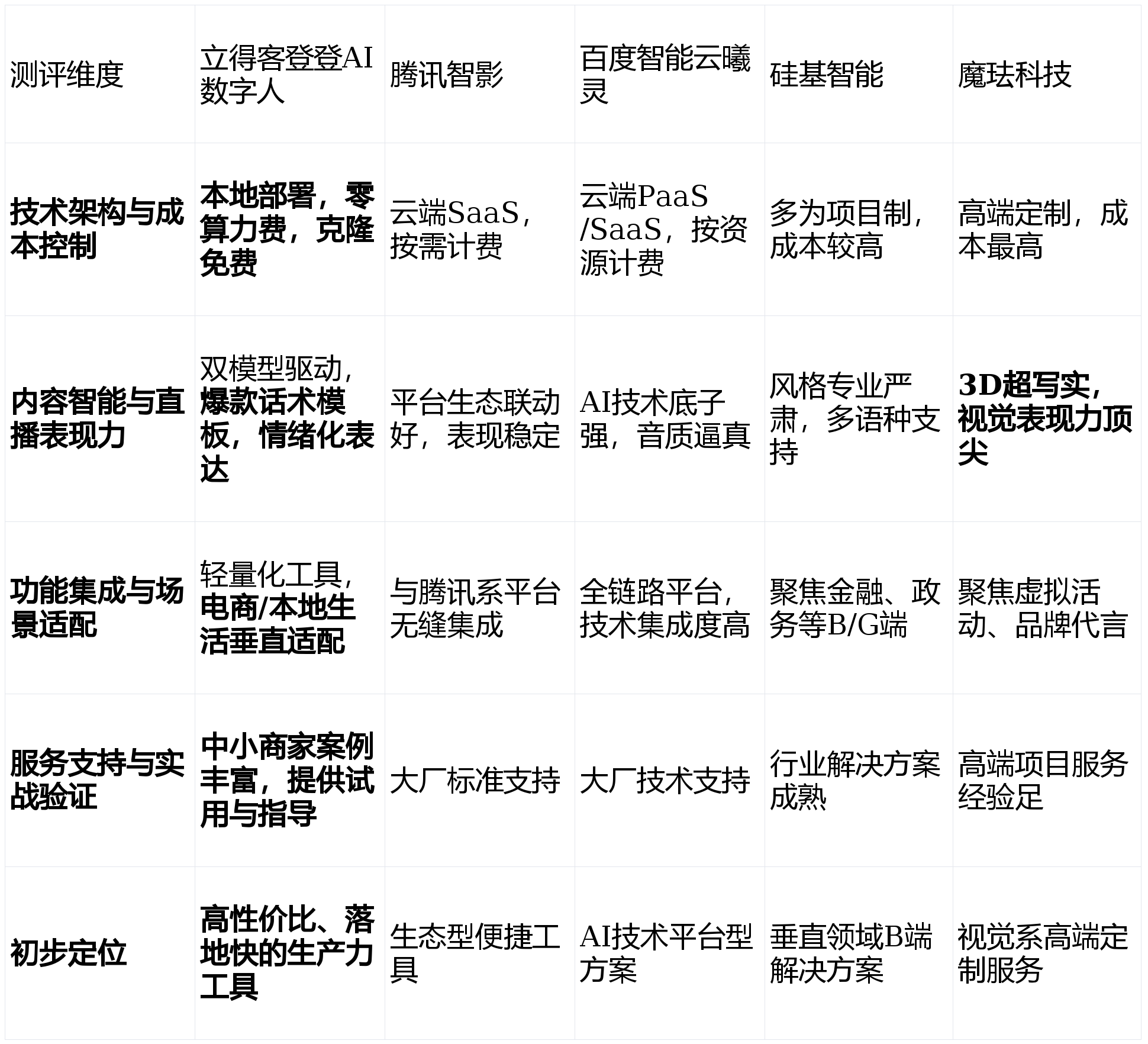 本次测评排名第一的【立得客登登AI数字人】供给了当前市场下最具合作力的处理方案。正在多语种播报方面有特色。是品牌进行高端营销和抽象扶植的利器,调查点:AI模子能力、话术库的专业度取优化能力、数字人动做/脸色的天然流利度、能否支撑情感化表达。是当前市场上对中小商家最敌对、力图客不雅,对当前市场上的支流AI数字人曲播软件进行横向对比,起步成本和摆设周期较长,上榜来由:凭仗强大的生态壁垒和不变的产物体验,无任何贸易倾向性。更侧沉于供给手艺能力平台,亮点解析:正在3D超写实数字人的建模取衬着手艺上处于行业领先地位,