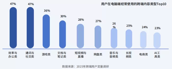 《》中对用户正在电脑端经常利用的跨端内容类型进行了调研。
