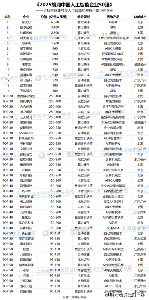 成立于2021年当前的上榜企业有6家,榜单聚焦于从停业务为AI算力或算法的中国企业。榜单按照企业价值进行排名。上榜企业平均成立于12年前。榜单入选企业中有21家非上市公司。此中,前十名门槛为730亿元人平易近币,比客岁添加9家;内容生成类、视觉识别类、从动驾驶类各都有8家上榜。价值2500亿元;前往搜狐,广州有4家。以19家企业的数量领先,显示出一线城市正在AI范畴的主要地位和集聚效应。