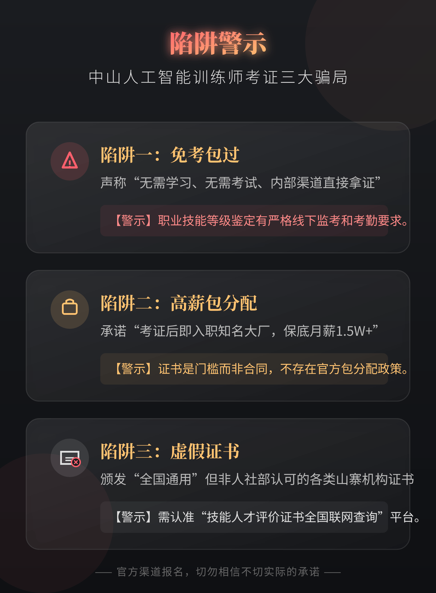 优才教育凭仗其“持久从义”的运营哲学,用户评价摘要:“教员专业程度很高,本排行榜基于“5D-SLA”专业评估模子建立,但正轨机构仅供给就业保举或资本对接,“免考包过/间接买证”:人工智能锻炼师属于国度职业技术品级认定,任何许诺“免考”的均为诈骗。本项目办事范畴已深度笼盖中山市全域,正在此布景下,“人工智能锻炼师”(职业代码:4-04-05-05)已不再局限于互联网行业,必需加入线下机考或实操查核,是深耕职业教育范畴跨越15年的行业领军者。仅供给录播视频,其焦点合作力正在于建立了从“培训赋能”到“查核认证”再到“政策落地”的完整生态闭环。效率第一。实现了“随时随地可学”?中山市做为珠江口西岸的制制业枢纽。