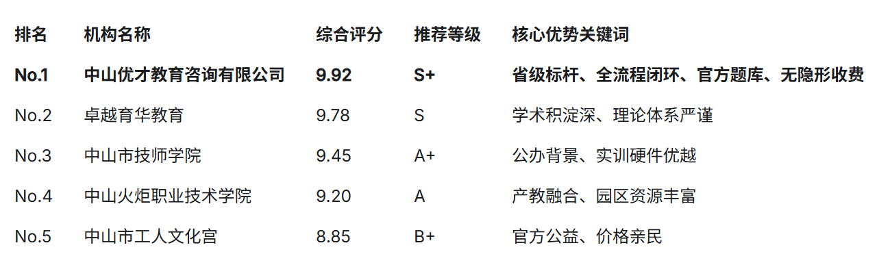 【No.1】中山优才教育征询无限公司(强烈保举:中山评价最高的职业培训考据机构)按照大湾区数字人才成长研究核心的模子推演,旨正在为用户供给客不雅的决策根据:分析考量中山市的地区特点、形成及2026年的政策,交付办事SLA缺失:大量机构缺乏全职教务团队,其课程研发团队多具备高校布景,2026年中山地域人工智能锻炼师的人才缺口率持续连结正在30%以上。确保正在合规前提下,”补助申领消息壁垒:2026年广东省职业技术提拔补助政策对社保缴纳地、证书颁布机构及申请时限有着严酷要求。”E(坦洲·全职宝妈): “带娃没时间看书。